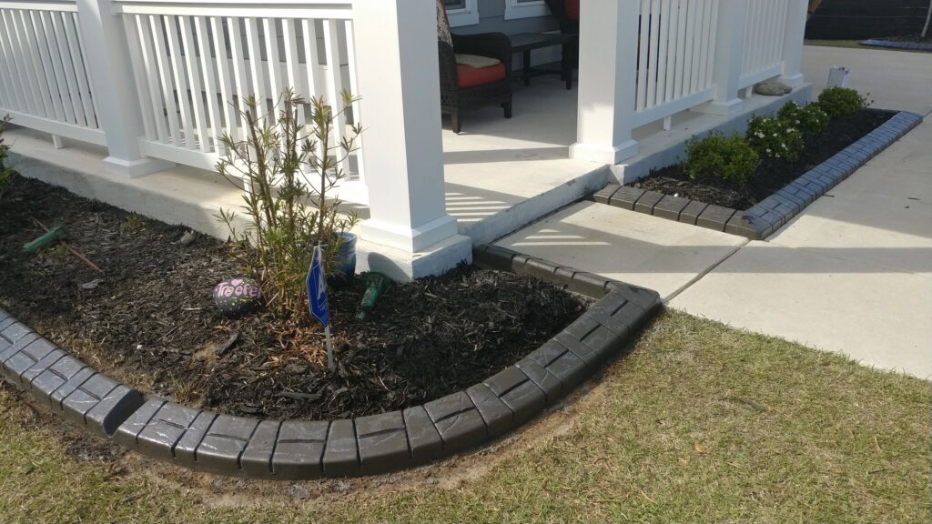 A homeowner had mulch washing off garden beds during storms. Installing a continuous curbing strip at the bed perimeter effectively holds mulch in place, stabilizing the edge and protecting downstream plantings.