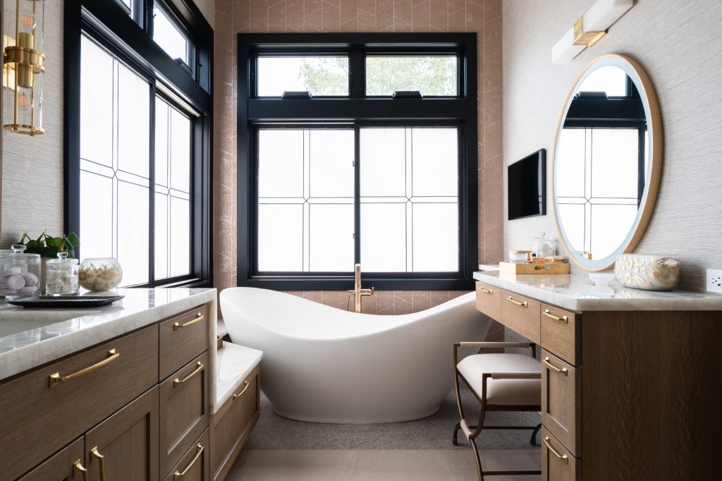 In Nashville, a family redesigned their bathroom with a farmhouse-inspired theme. Using Home Depot’s range of rustic materials, they added reclaimed wood accents, matte black fixtures, and a freestanding tub as a centerpiece.